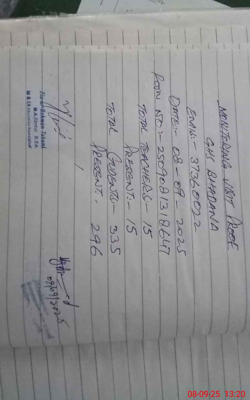 | EMIS Code: 37360022 | Name of School: GHS BHADANA | |||