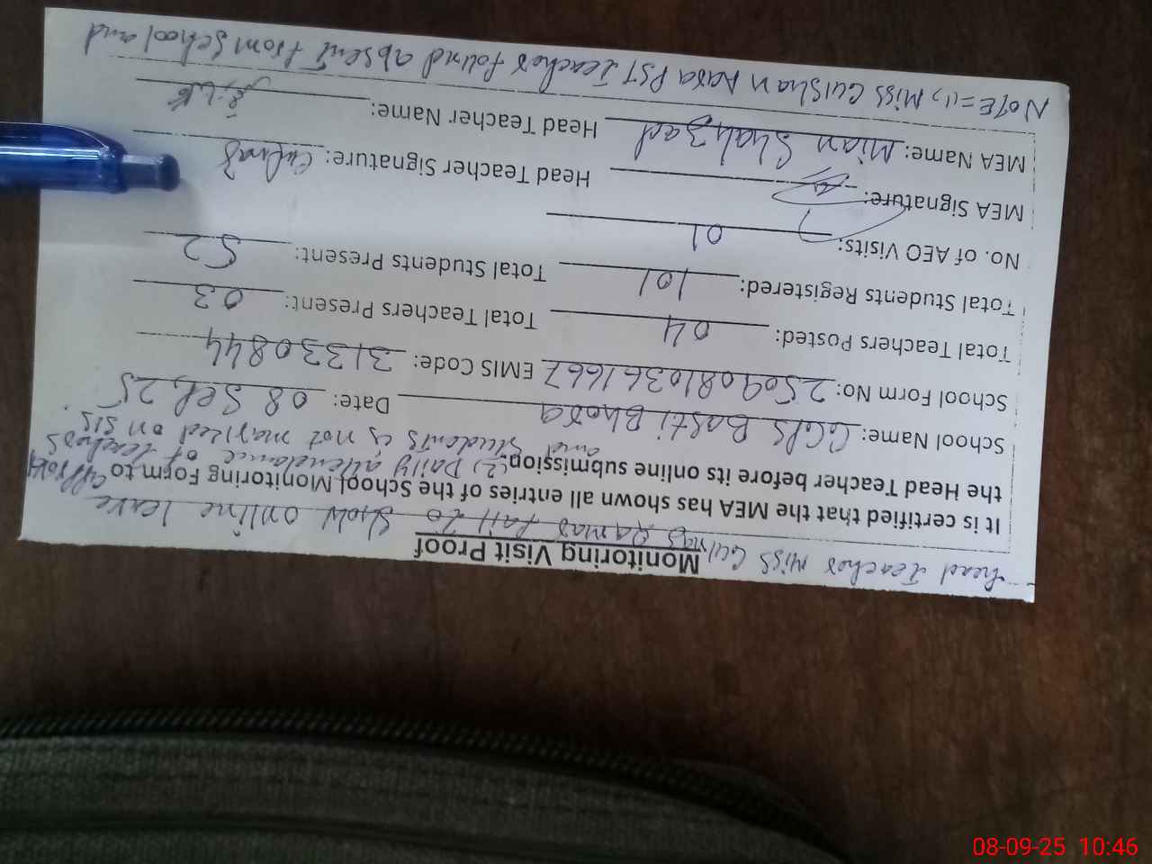 | Name: GU**** QA**** Designation: (School Headmaster's/Headmistress's) PST Phone/Cell Number: 03**** |