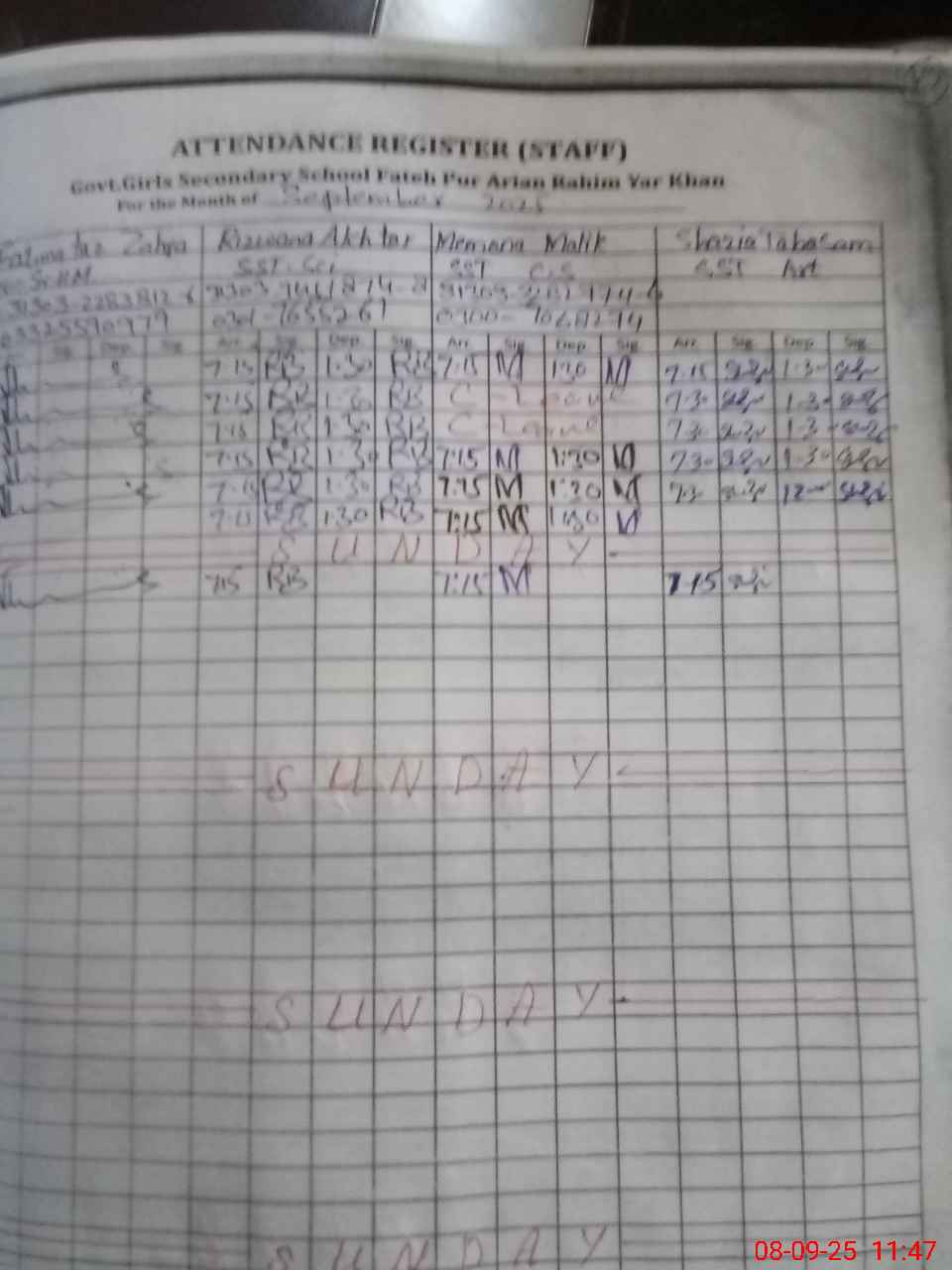 | Name: Fa**** Tu**** Za**** Designation: (School Headmaster's/Headmistress's) Head Mistress Phone/Cell Number: 03**** |