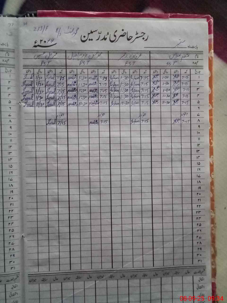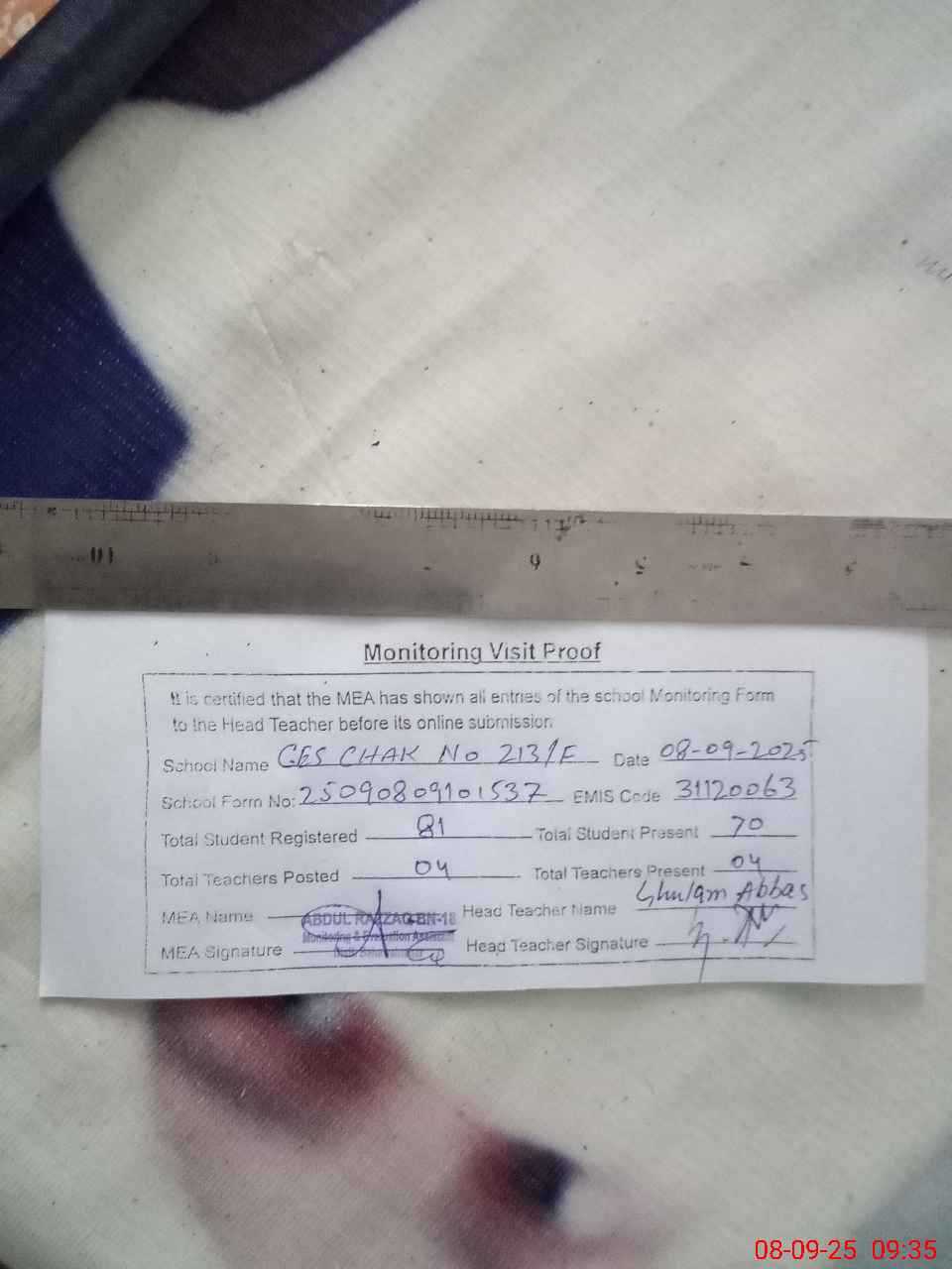 | EMIS Code: 31120063 | Name of School: GES CHAK NO. 213/F | |||