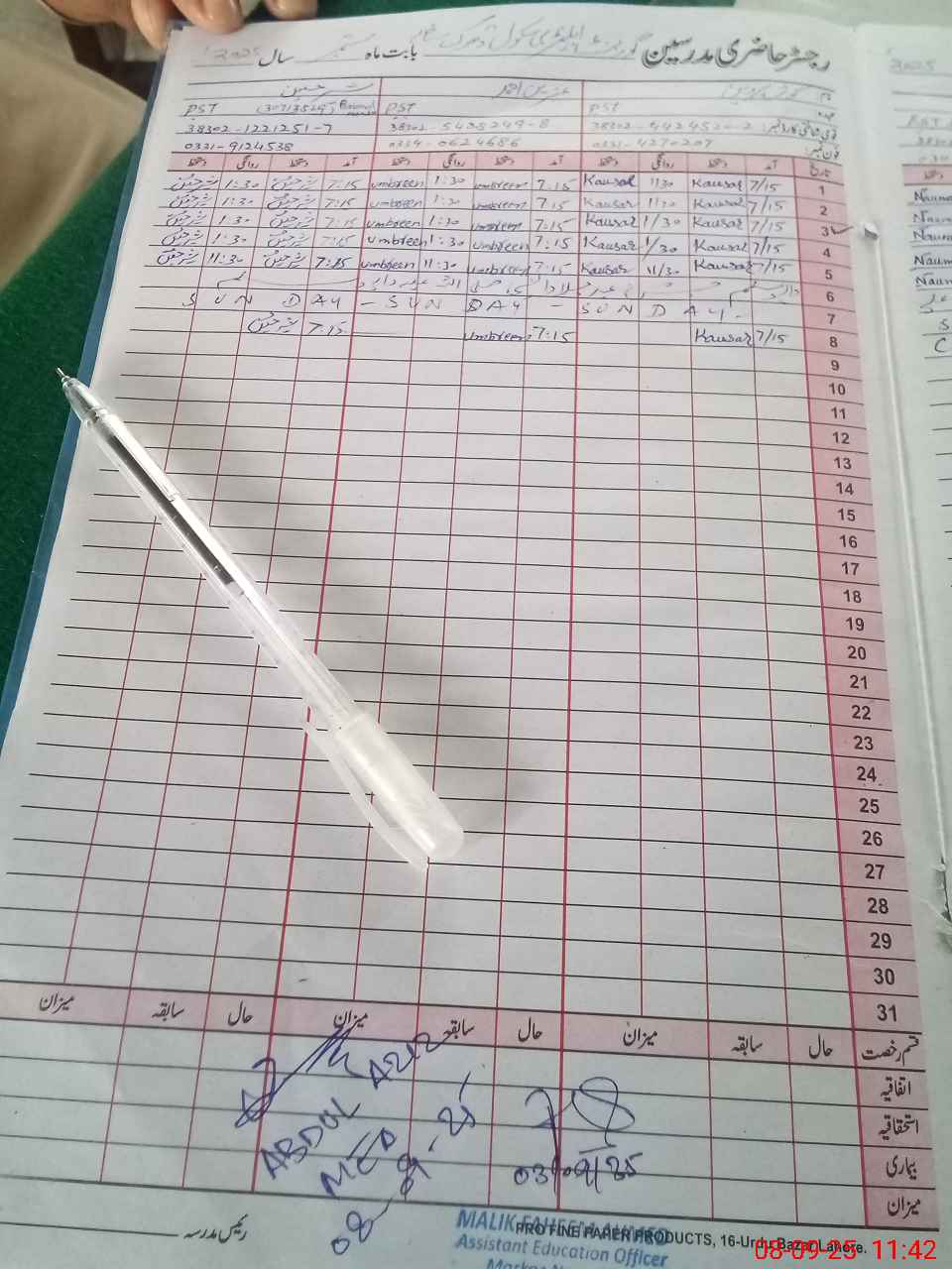 | Name: AB**** HA**** Designation: (School Headmaster's/Headmistress's) EST Phone/Cell Number: 03**** |