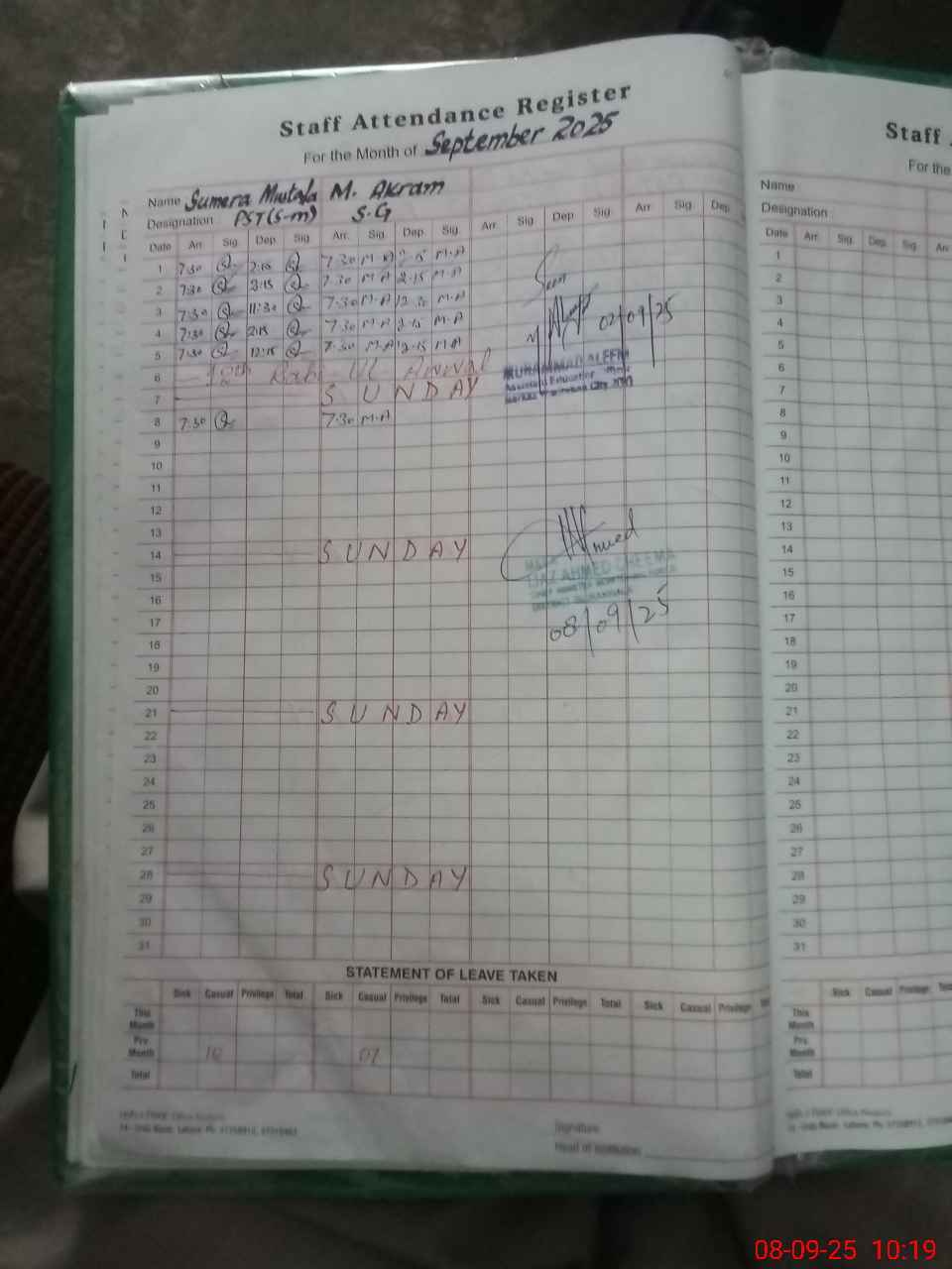 | Name: ZA**** TA**** Designation: (School Headmaster's/Headmistress's) SSE Phone/Cell Number: 03**** |