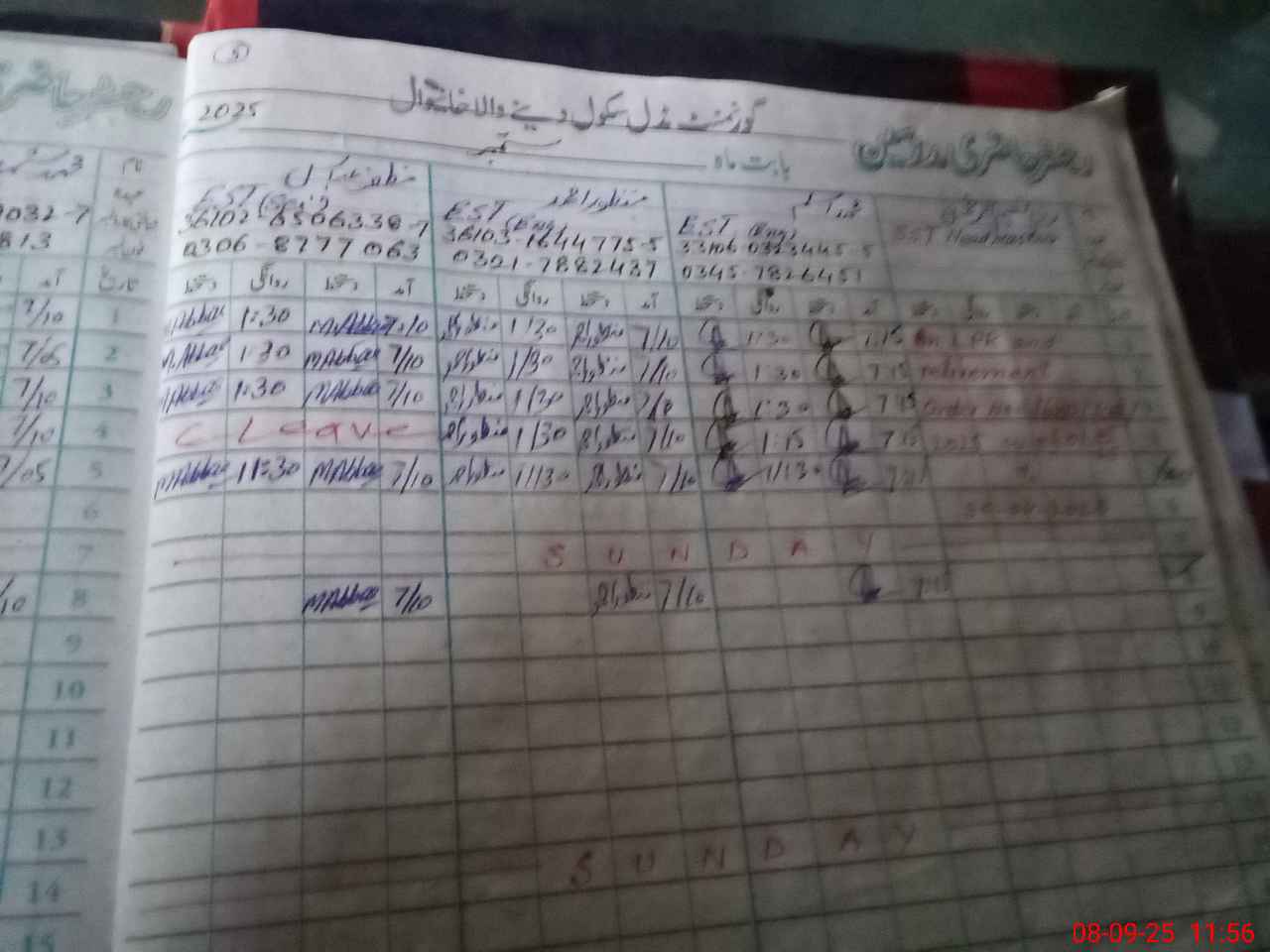 | Name: Mu**** As**** Designation: (School Headmaster's/Headmistress's) EST Eng Phone/Cell Number: 03**** |