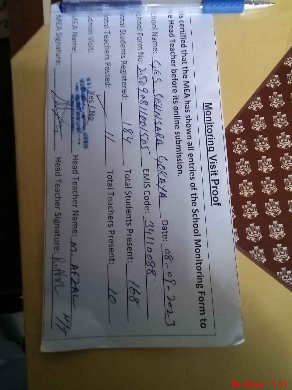| EMIS Code: 34110088 | Name of School: GES SEHNSARA GORAYA | |||
