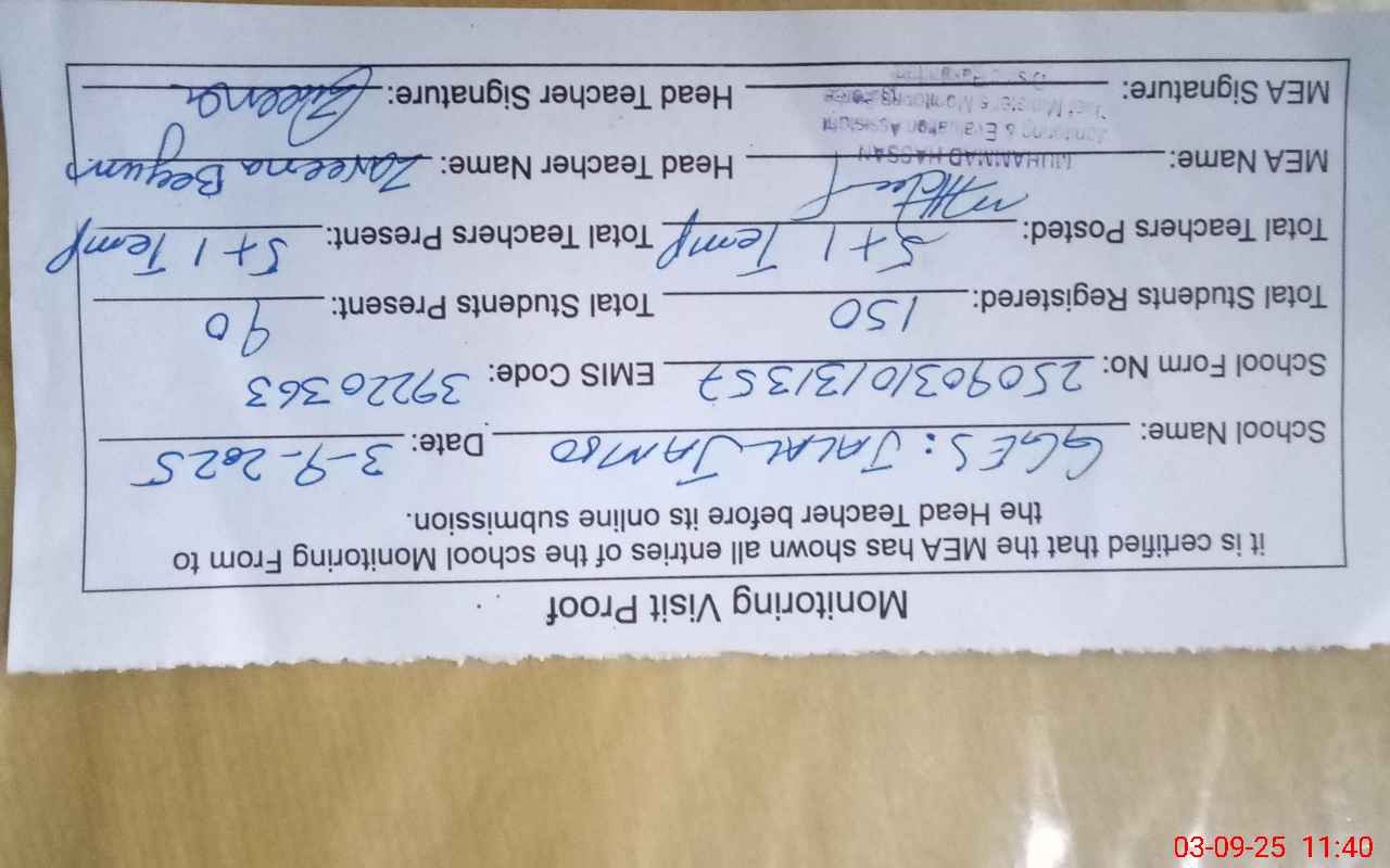 | EMIS Code: 39220363 | Name of School: GGES JALAL JAMMOON POST OFFICE MARI HAZARA | |||