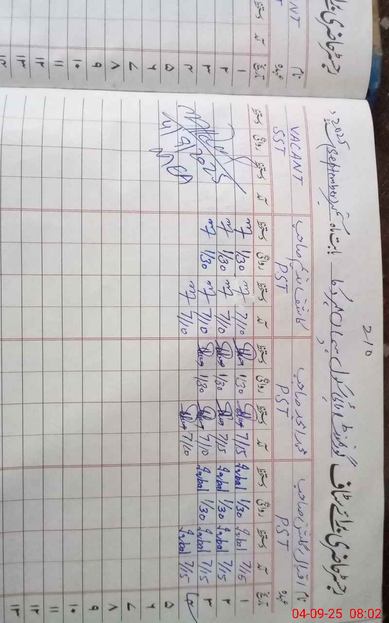 | CNIC | Full Name | Designation | R/C | Absence During Last Calender Month |