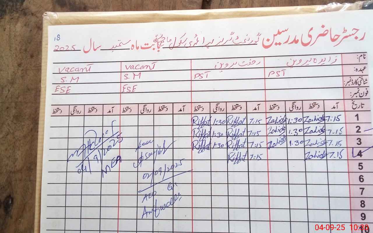 | Attendance Register | Head Teacher | MEA with School | Visit Proof |