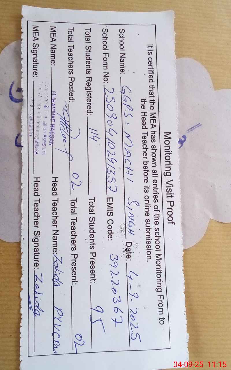 | EMIS Code: 39220367 | Name of School: GGPS MACHI SINGH 1 | |||