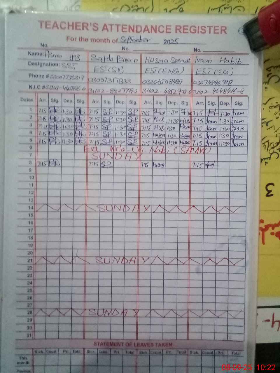 | Name: Sa**** Pa**** Designation: (School Headmaster's/Headmistress's) EST Phone/Cell Number: 03**** |