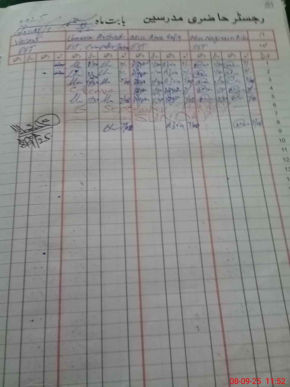 | CNIC | Full Name | Designation | R/C | Absence During Last Calender Month |