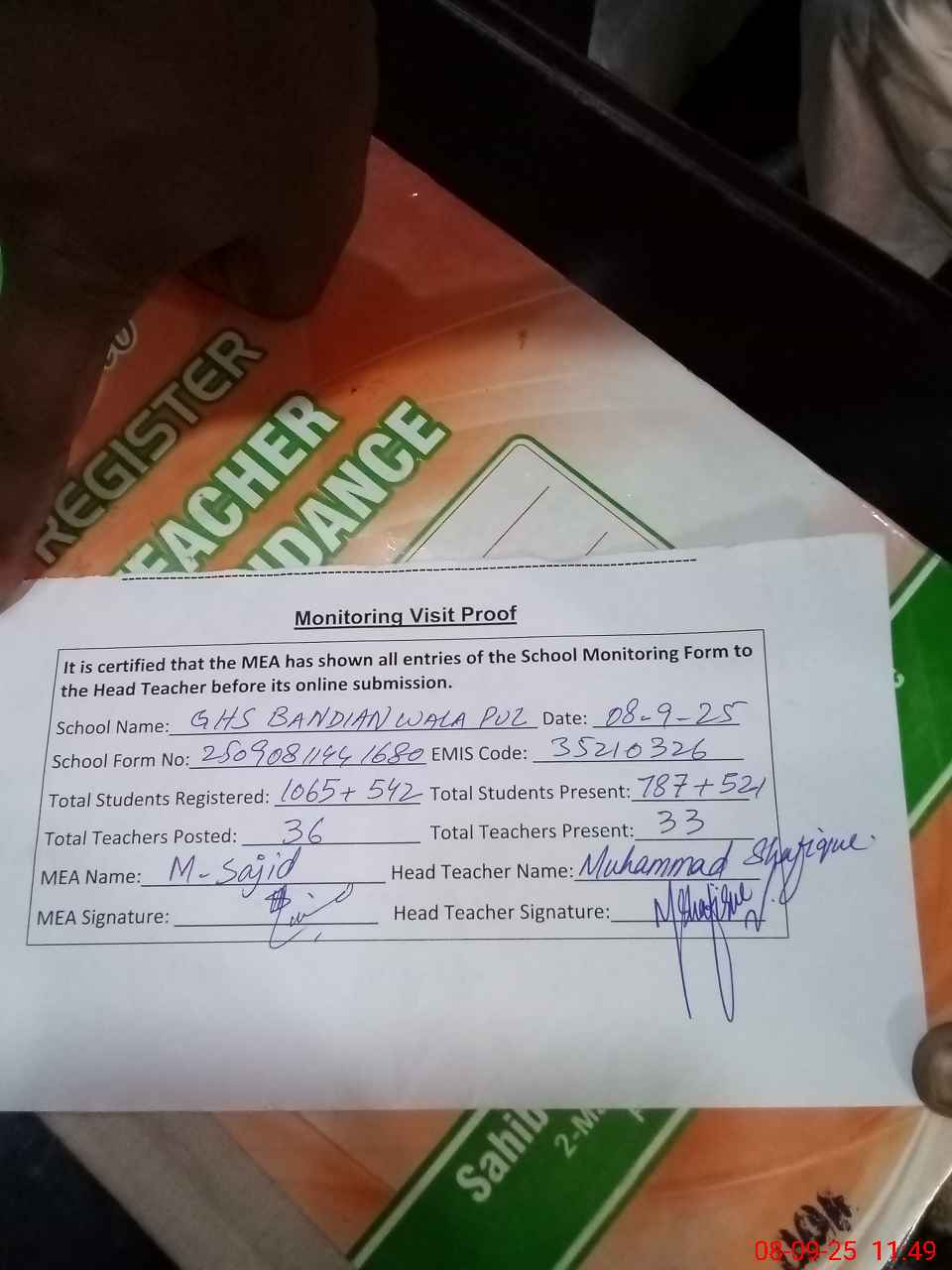 | EMIS Code: 35210326 | Name of School: GHS BANDIAN WALA PUL CHUNGI AMER SIDHU | |||