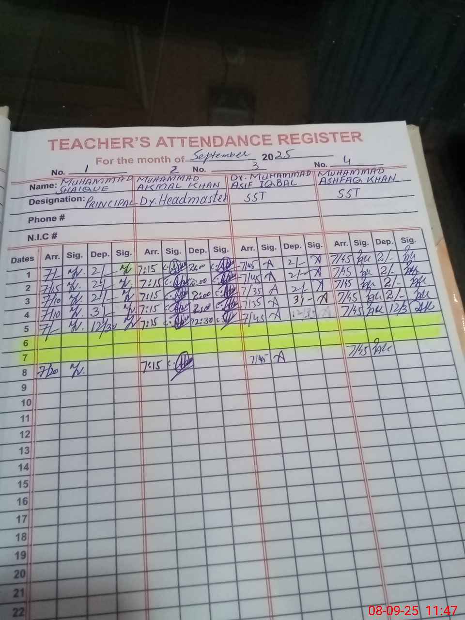 | Remarks (Use Separate Page if Required): Three PST teachers namely Muhammad Abbas Rubina Umer and Sajida Israil has transfered from this school Present students percentage is 74 percent while second shift attendance noted from Roznamcha 35210326 | |||||