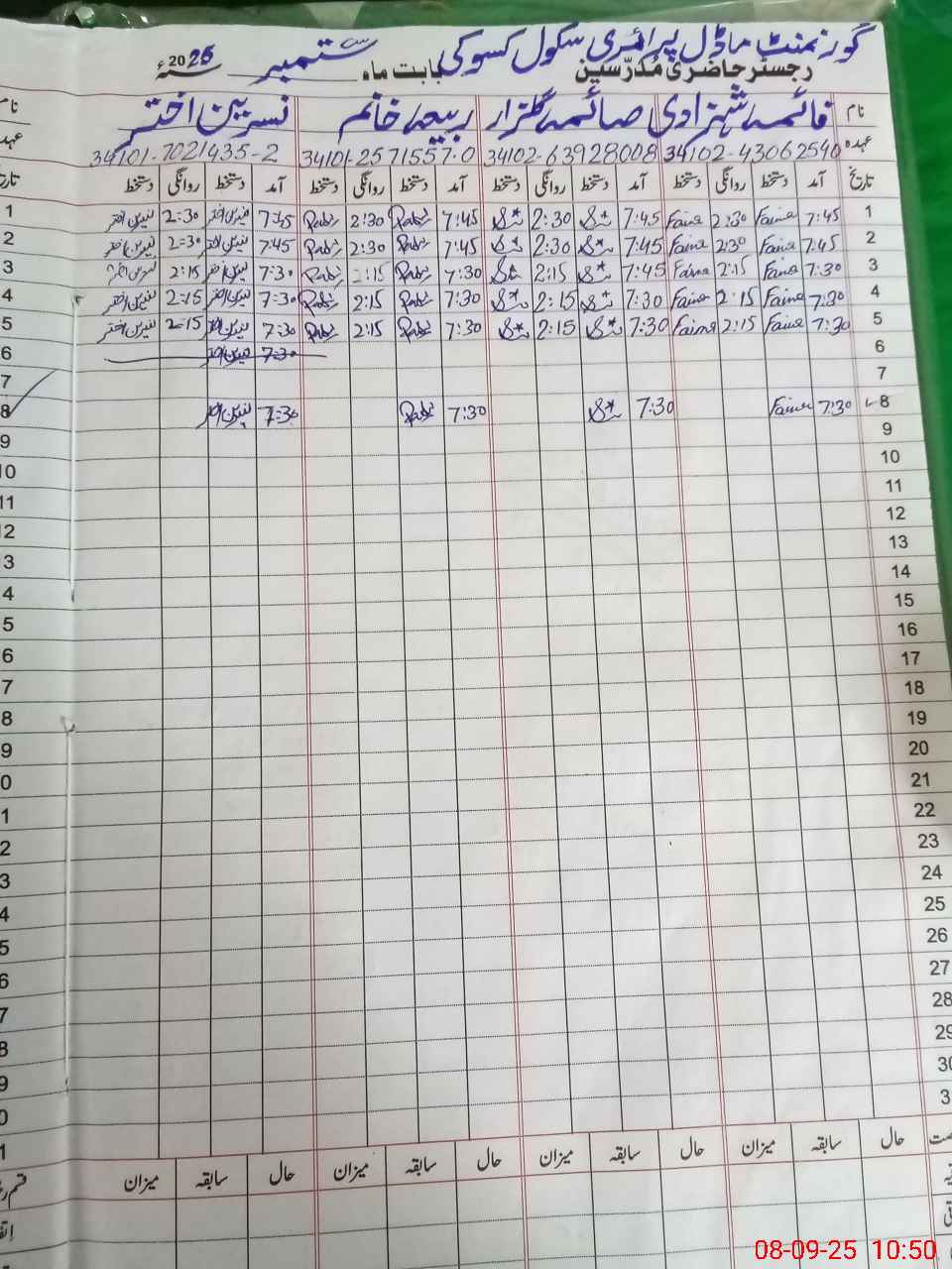 | Name: FA**** SH**** Designation: (School Headmaster's/Headmistress's) PST Phone/Cell Number: 03**** |