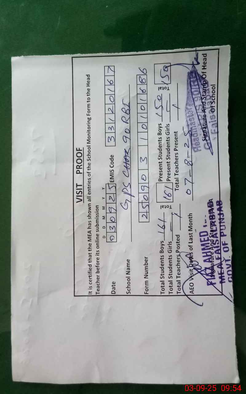 | EMIS Code: 33120167 | Name of School: GPS CHAK 90 RB I | |||