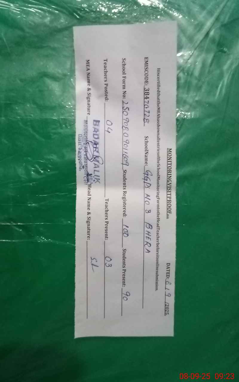 | EMIS Code: 38470728 | Name of School: GGPS NO.3 BHERA | |||