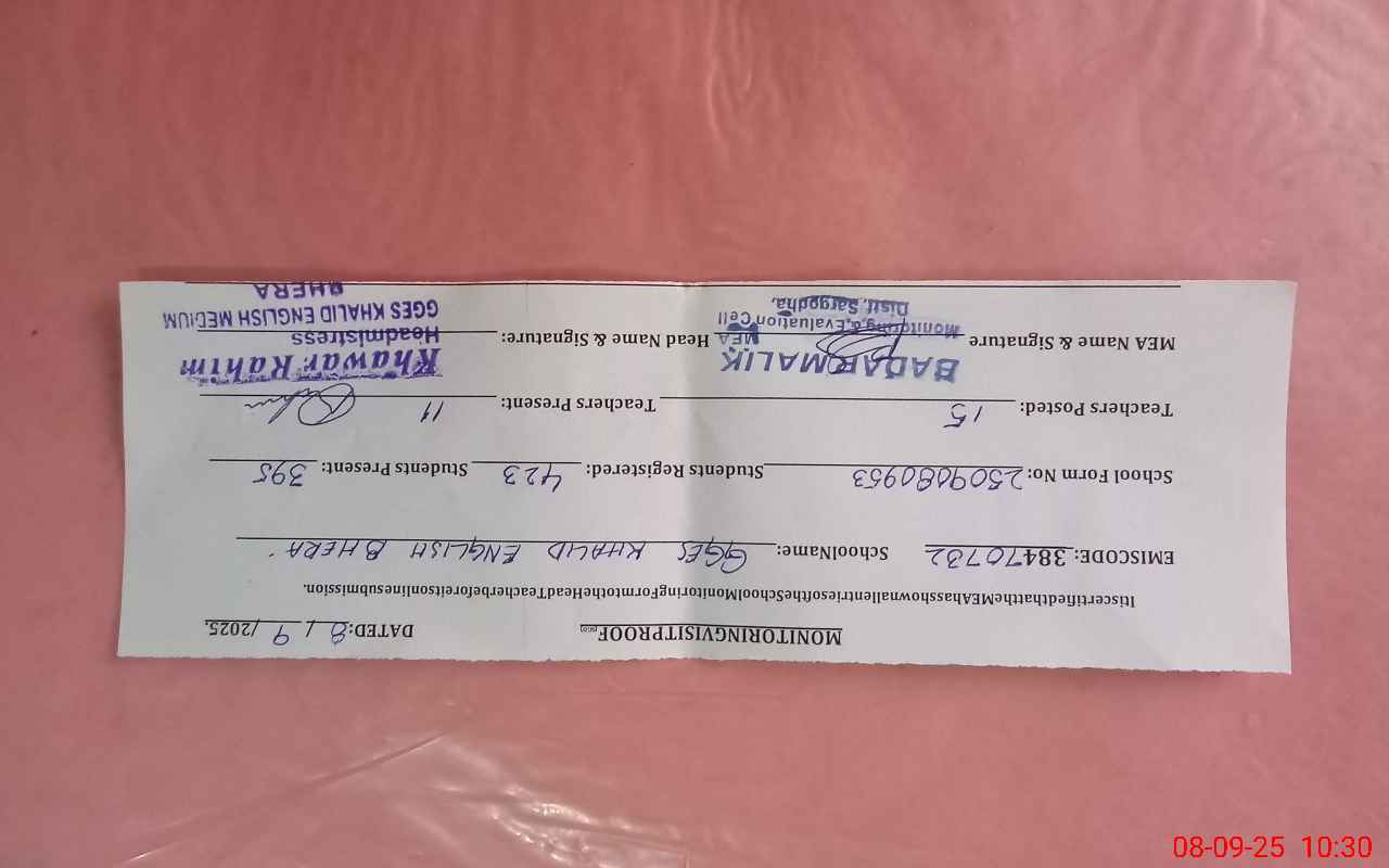 | EMIS Code: 38470732 | Name of School: GGES KHALID ENGLISH MEDIUM BHERA | |||