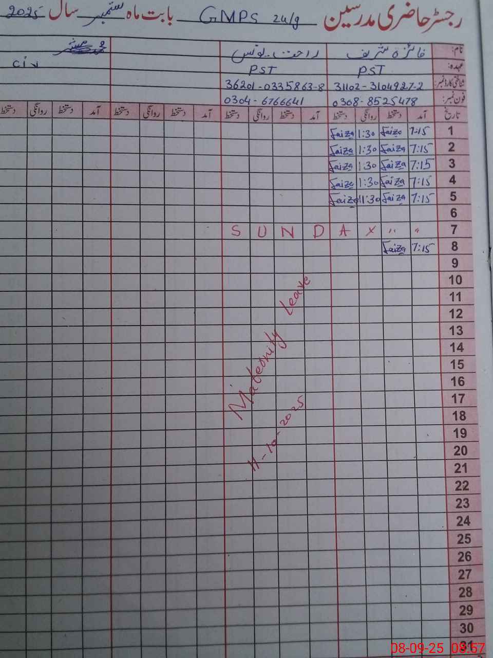 | Name: Fa**** Sh**** Designation: (School Headmaster's/Headmistress's) PST Phone/Cell Number: 03**** |