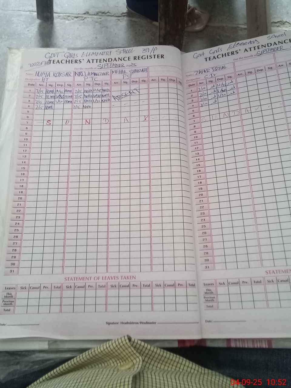 | Name: HU**** KA**** Designation: (School Headmaster's/Headmistress's) PST Phone/Cell Number: 03**** |