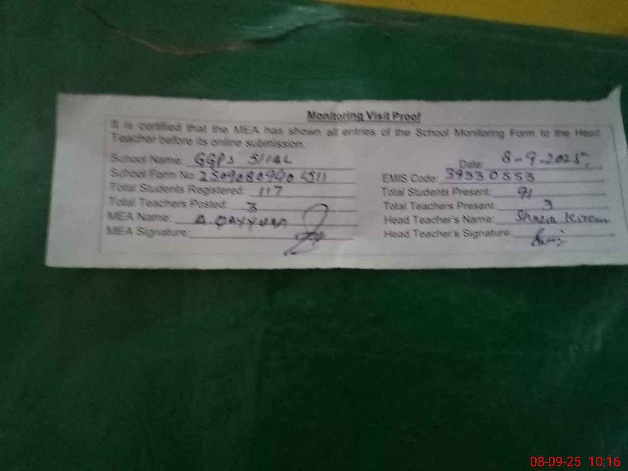 | Certified that this School was Inspected by the Undersigned MEA/DMO Today and the Information Stated Above is as Per Record. | |||||