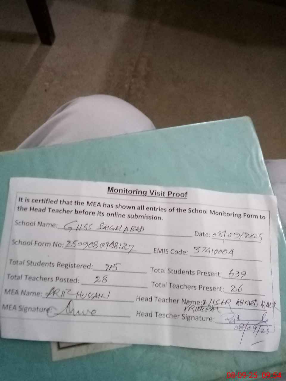 | EMIS Code: 37410004 | Name of School: GHSS SAIGALABAD CHAKWAL | |||