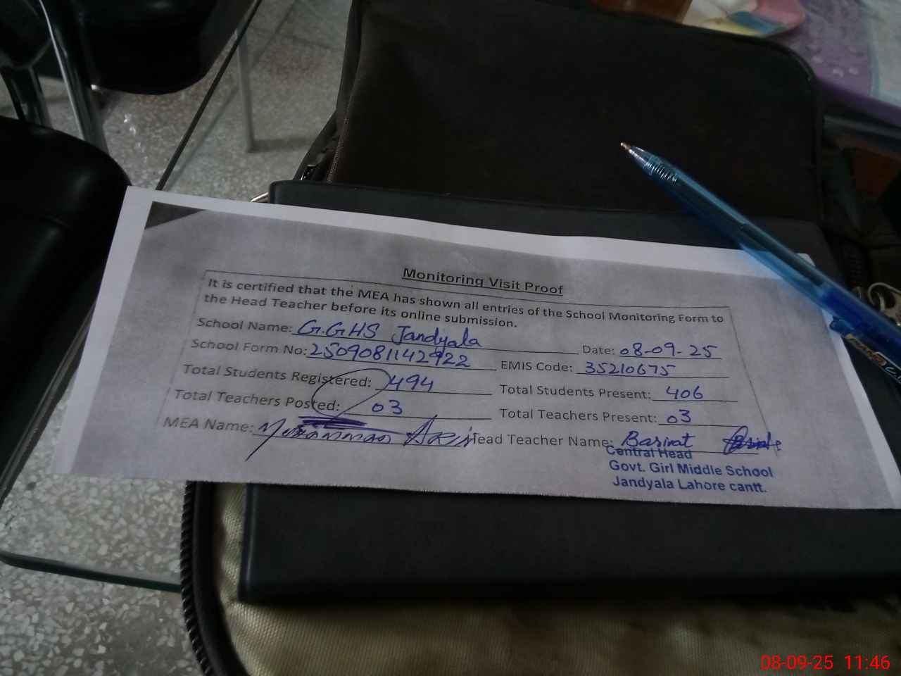 | EMIS Code: 35210675 | Name of School: GGHS JANDYALA TEHSIL SHALIMAR | |||