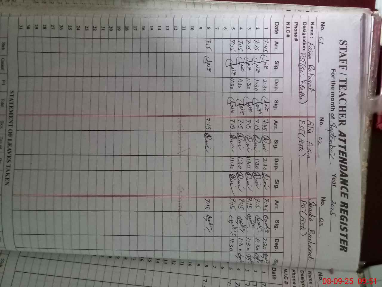 | Name: Fa**** Ra**** Designation: (School Headmaster's/Headmistress's) PST (Sci Math) Phone/Cell Number: 03**** |