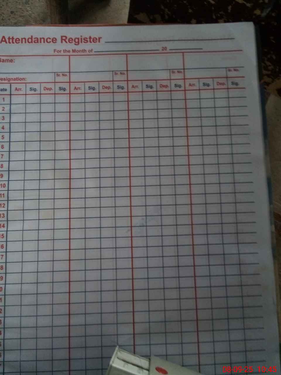 | CNIC | Full Name | Designation | R/C | Absence During Last Calender Month |