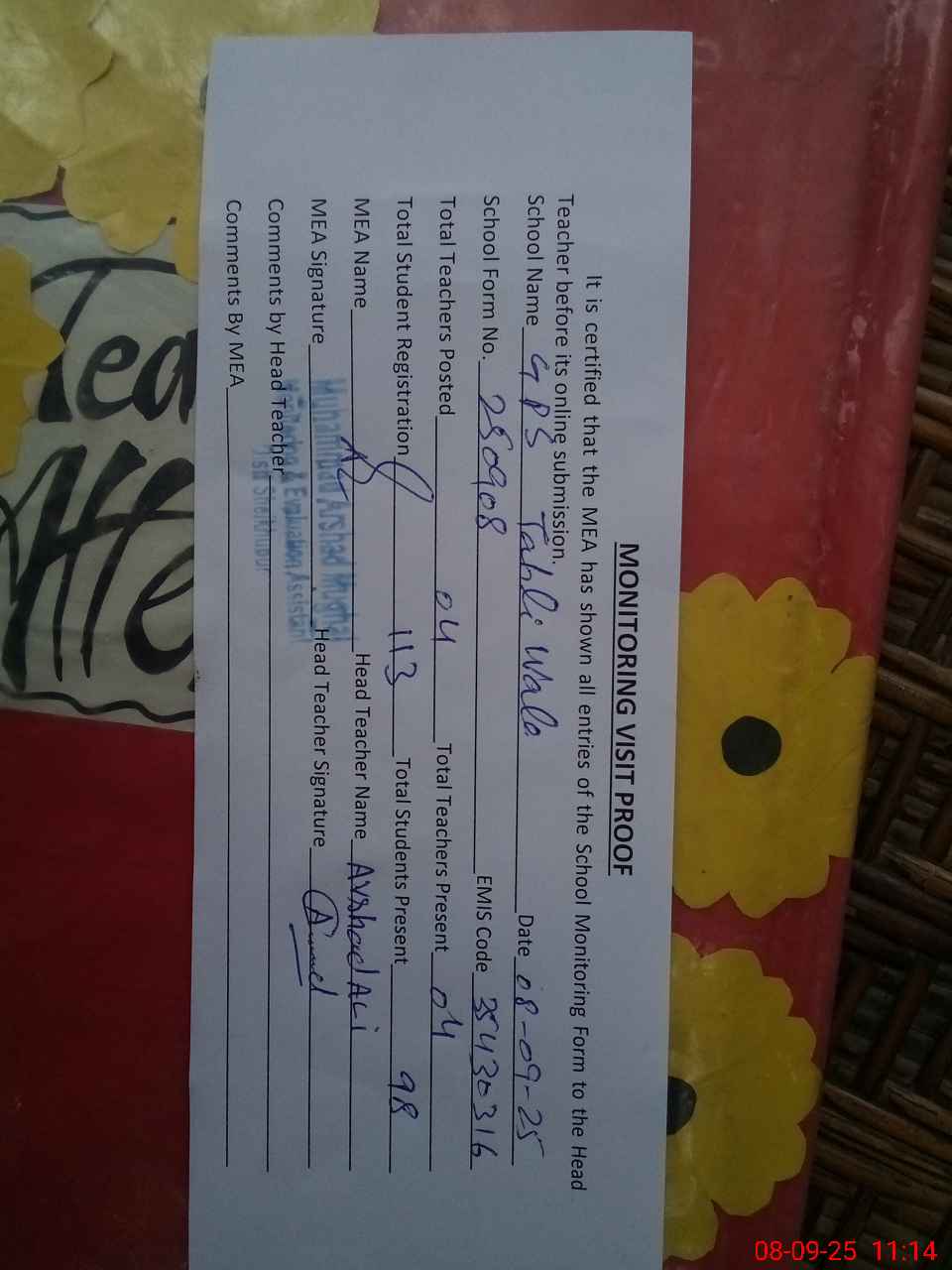 | EMIS Code: 35430316 | Name of School: GPS TAHLI WALA | |||