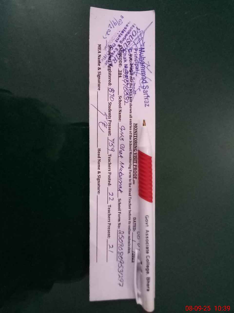 | EMIS Code: 38470032 | Name of School: GHS CHAK MUBARAK | |||
