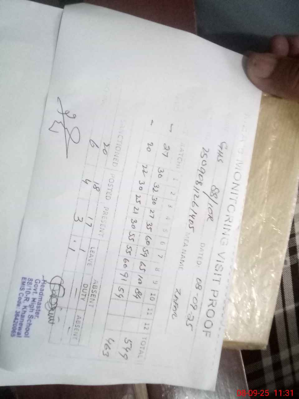 | EMIS Code: 36420065 | Name of School: GHS 88/10-R, KHANEWAL | |||