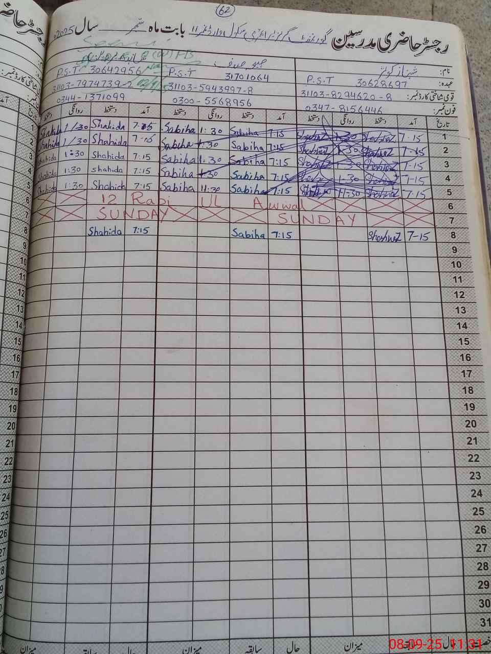 | CNIC | Full Name | Designation | R/C | Absence During Last Calender Month |
