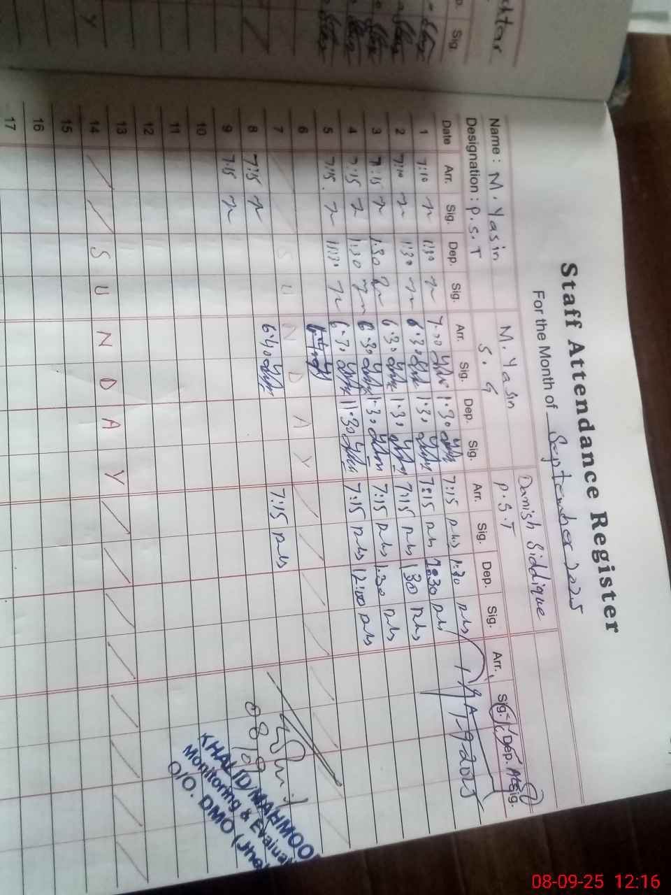 | CNIC | Full Name | Designation | R/C | Absence during last cal. month |