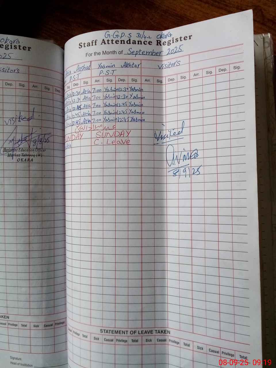 | Name: At**** Ar**** Designation: (School Headmaster's/Headmistress's) PST Phone/Cell Number: 03**** |