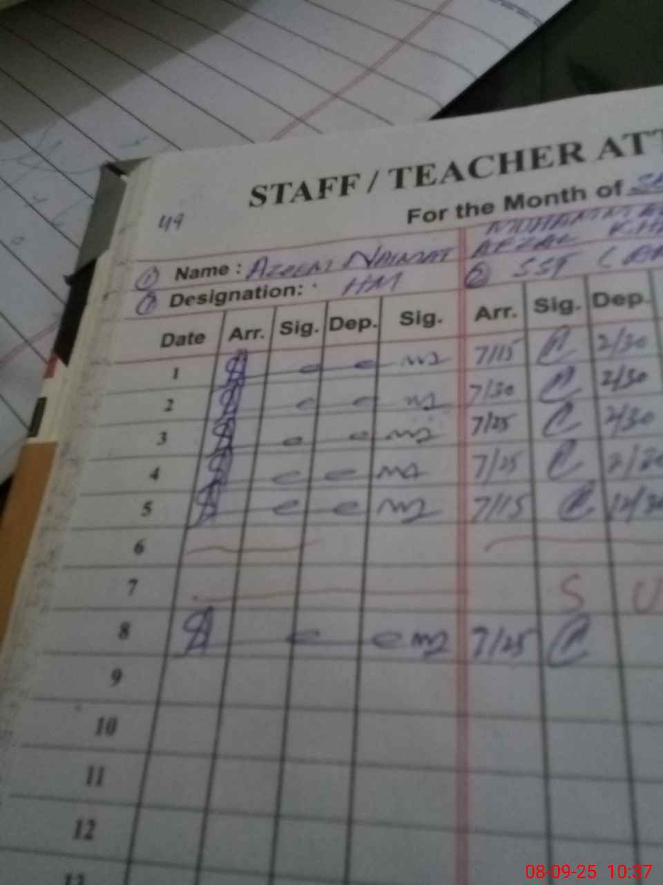 | Name: Az**** Na**** Designation: (School Headmaster's/Headmistress's) Head Master Phone/Cell Number: 03**** |