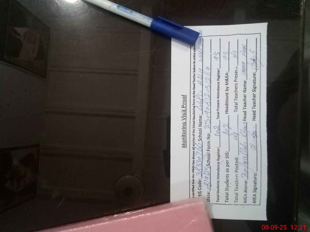 | Attendance Register | Head Teacher | MEA with School | Visit Proof |