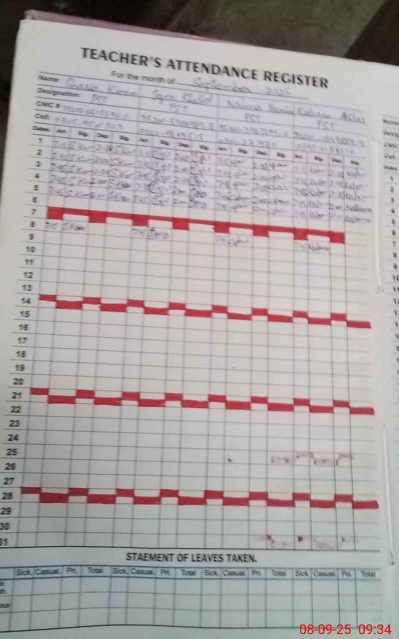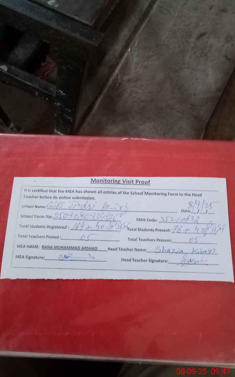 | Remarks (Use Separate Page if Required): NSB record not maintain properly NSB record not maintain on SIS Afternoon school strength 40 Present afternoon school strength 40 Morning shift students strength 164 Present strength morning 76 students | |||||