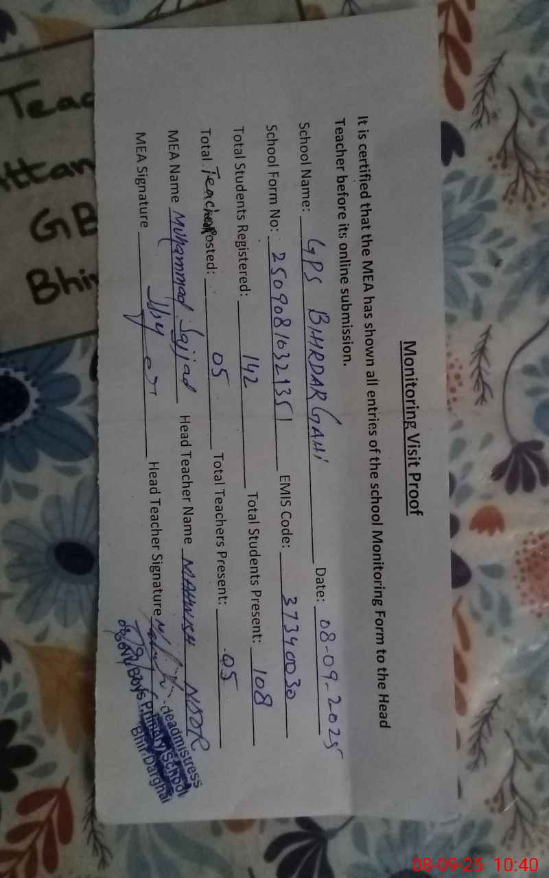 | EMIS Code: 37340030 | Name of School: GPS BHIRDAR GAHI | |||