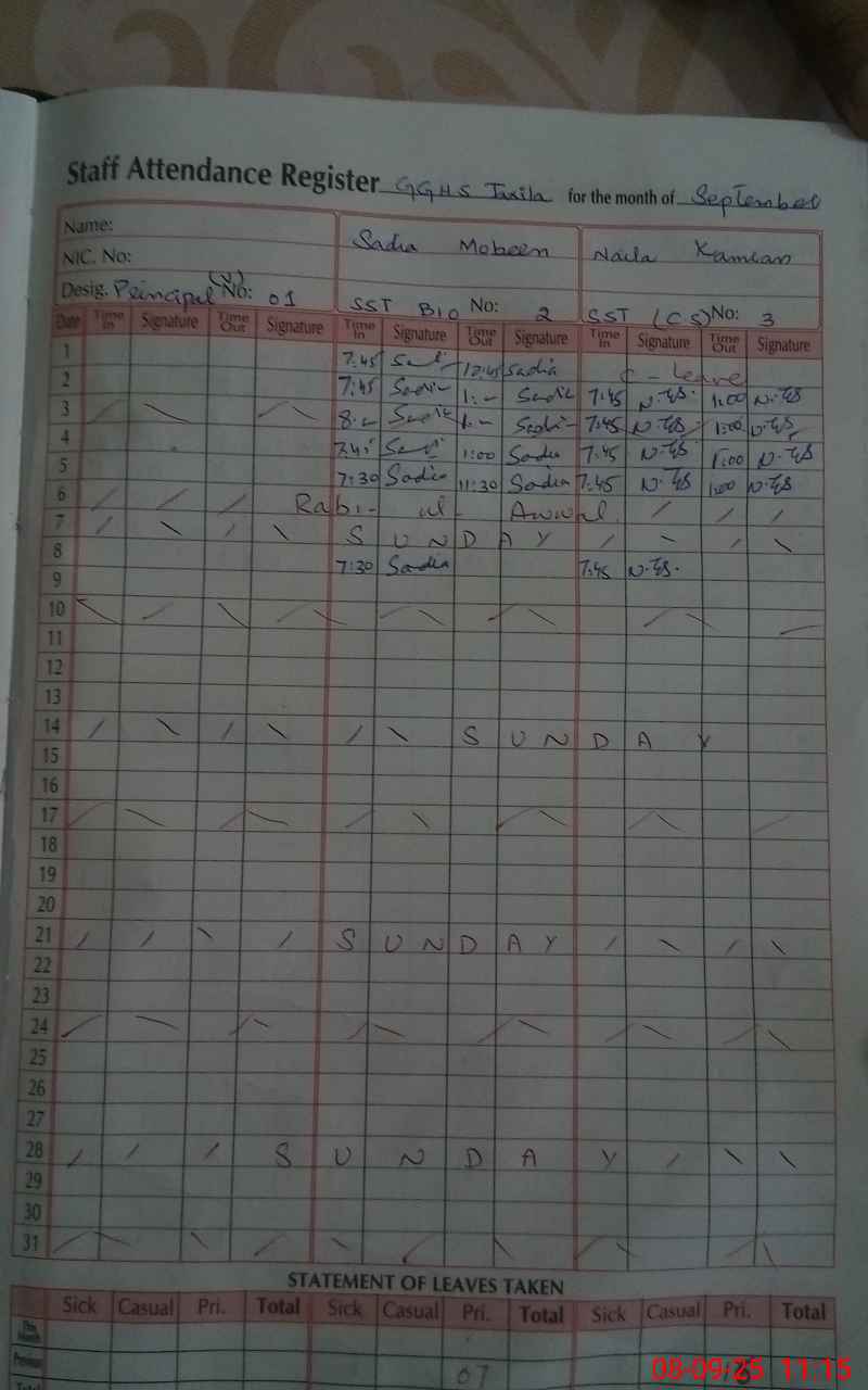 | 36**** | Mi**** Ta**** | Sr. Headmaster | Regular | 0 | 0 | 0 | 0 | 0 | 0 | 0 | 0 | 0 | Other |