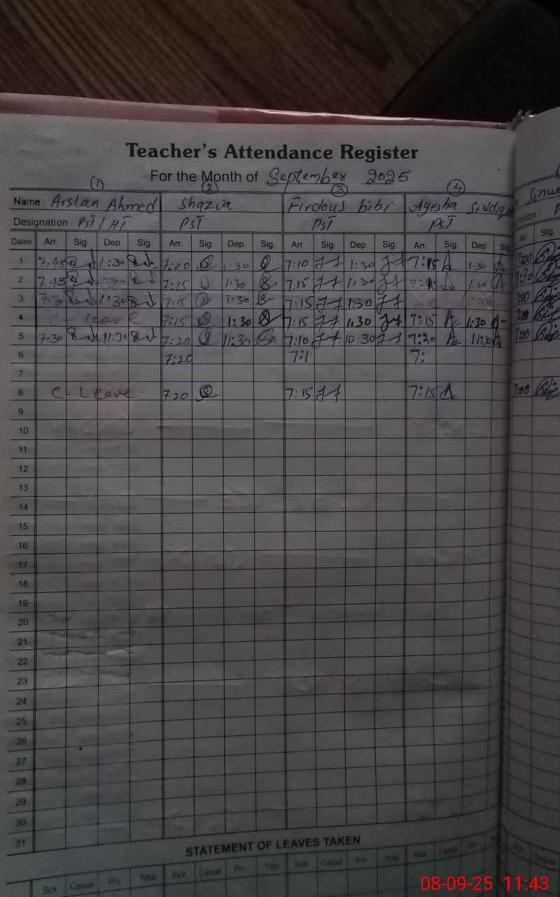 | Attendance Register | Head Teacher | MEA with School | Visit Proof |