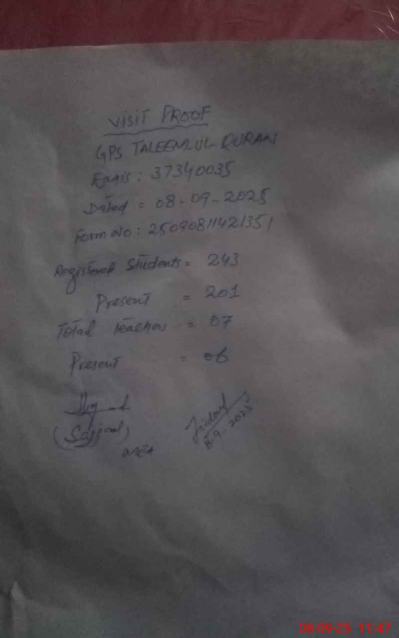 | EMIS Code: 37340035 | Name of School: GPS TALEEM-UL-QURAN | |||