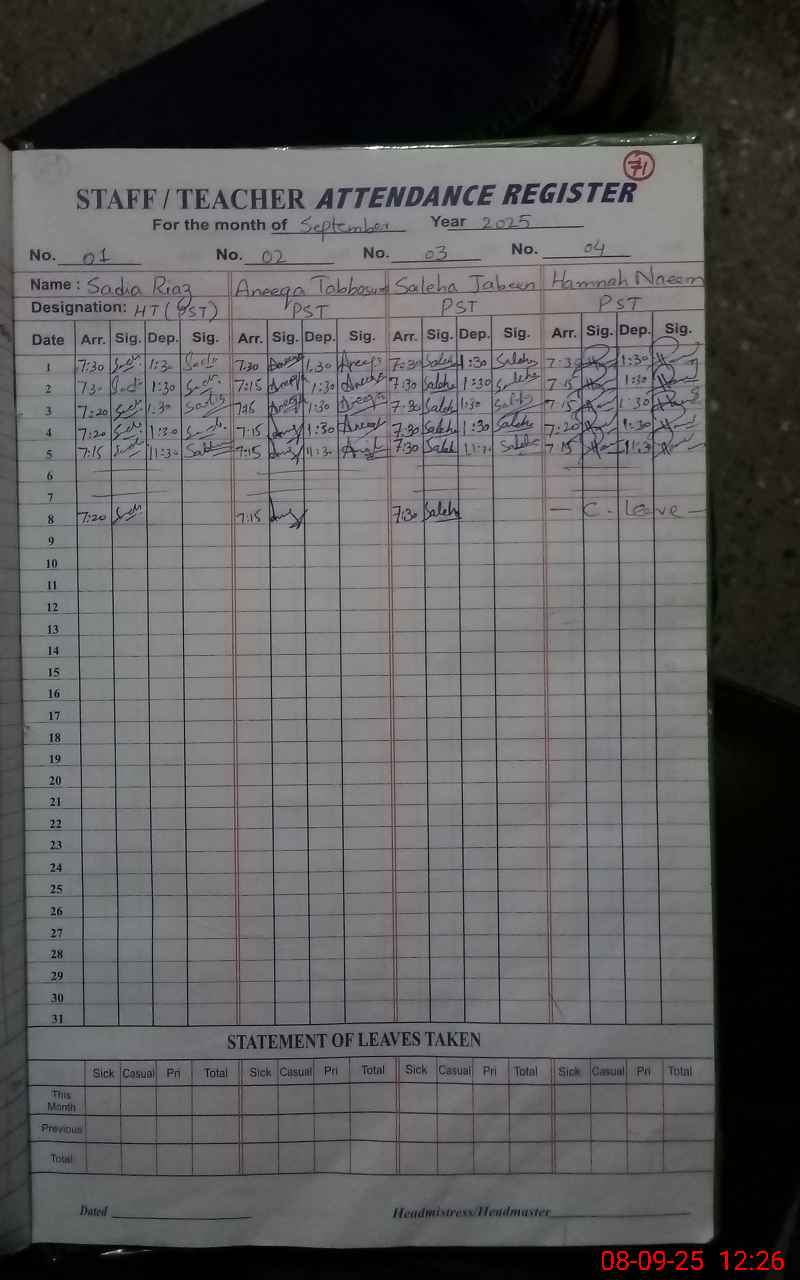 | Attendance Register | Head Teacher | MEA with School | Visit Proof |