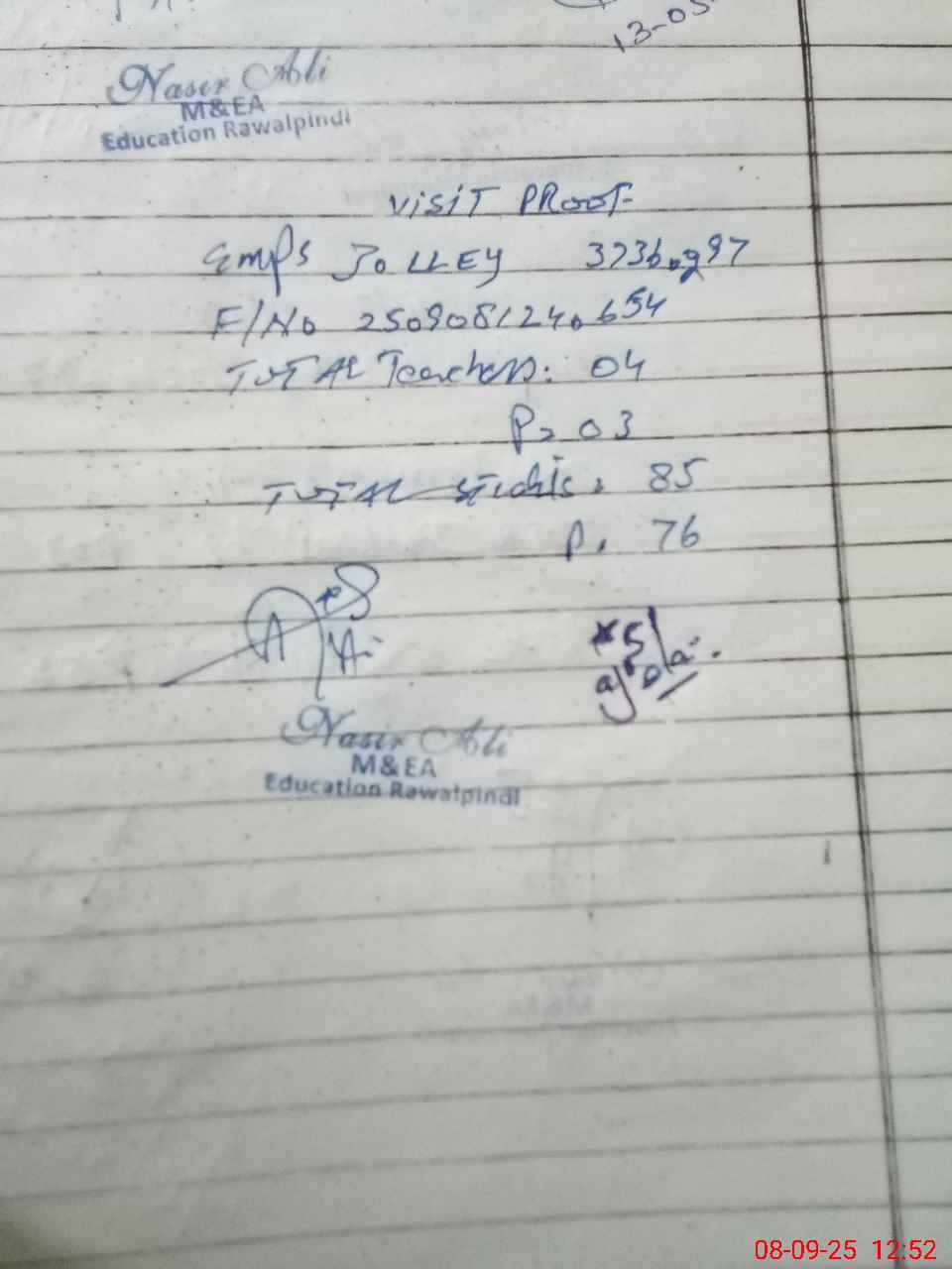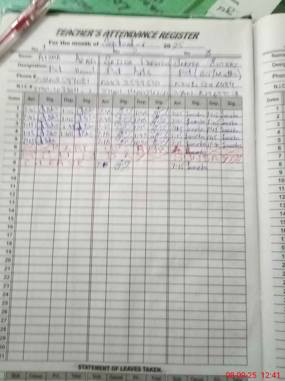 | Name: Ai**** Az**** Designation: (School Headmaster's/Headmistress's) PST/ Phone/Cell Number: 03**** |