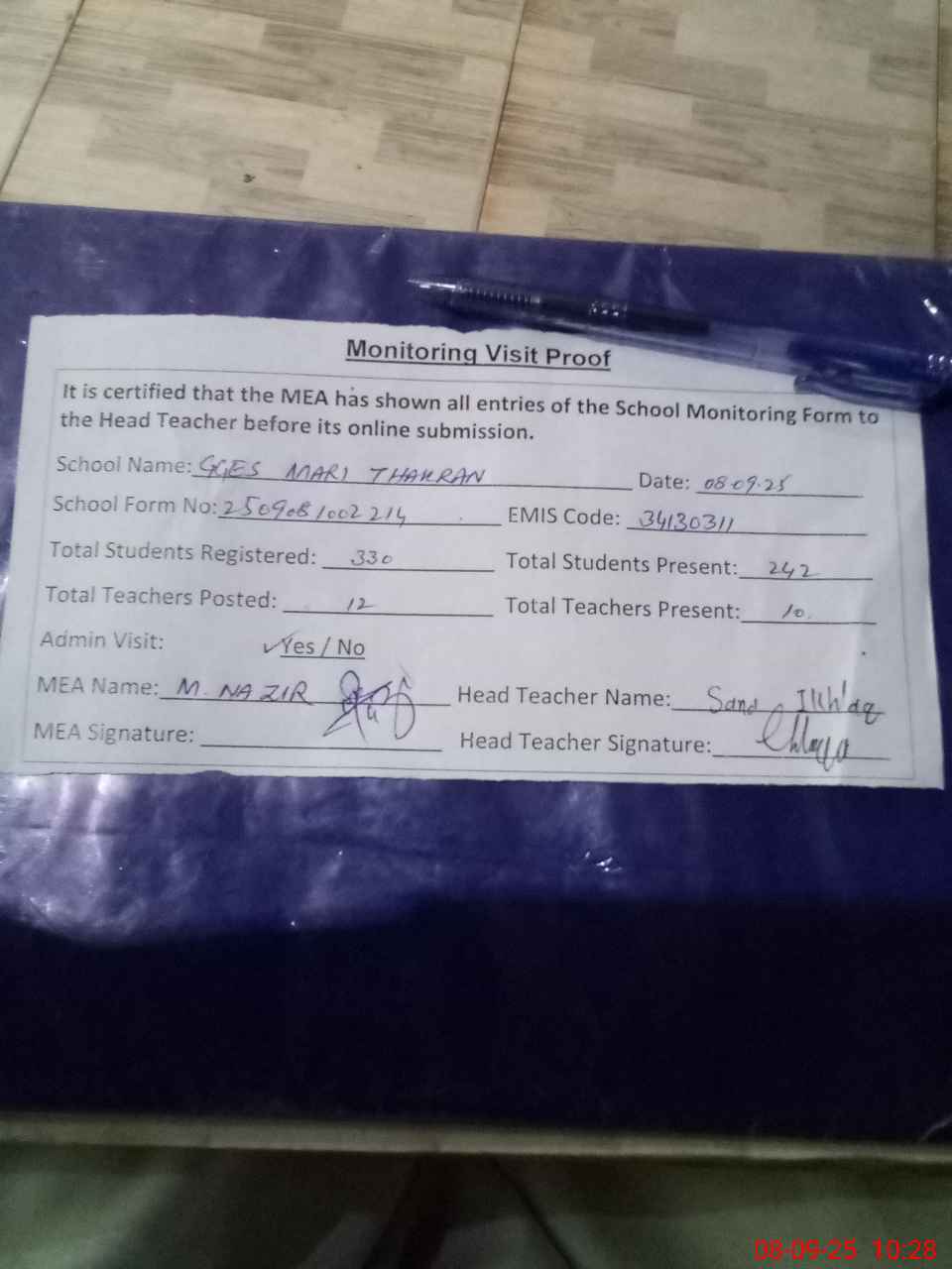 | EMIS Code: 34130311 | Name of School: GGES MARI THAKRAN | |||