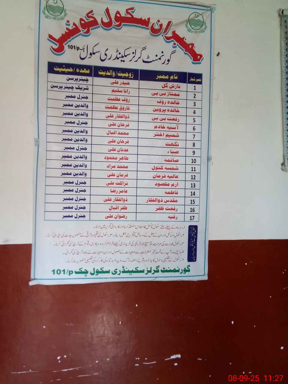 | EMIS Code: 31330148 | Name of School: GGHS CHAK NO. 101/P | |||