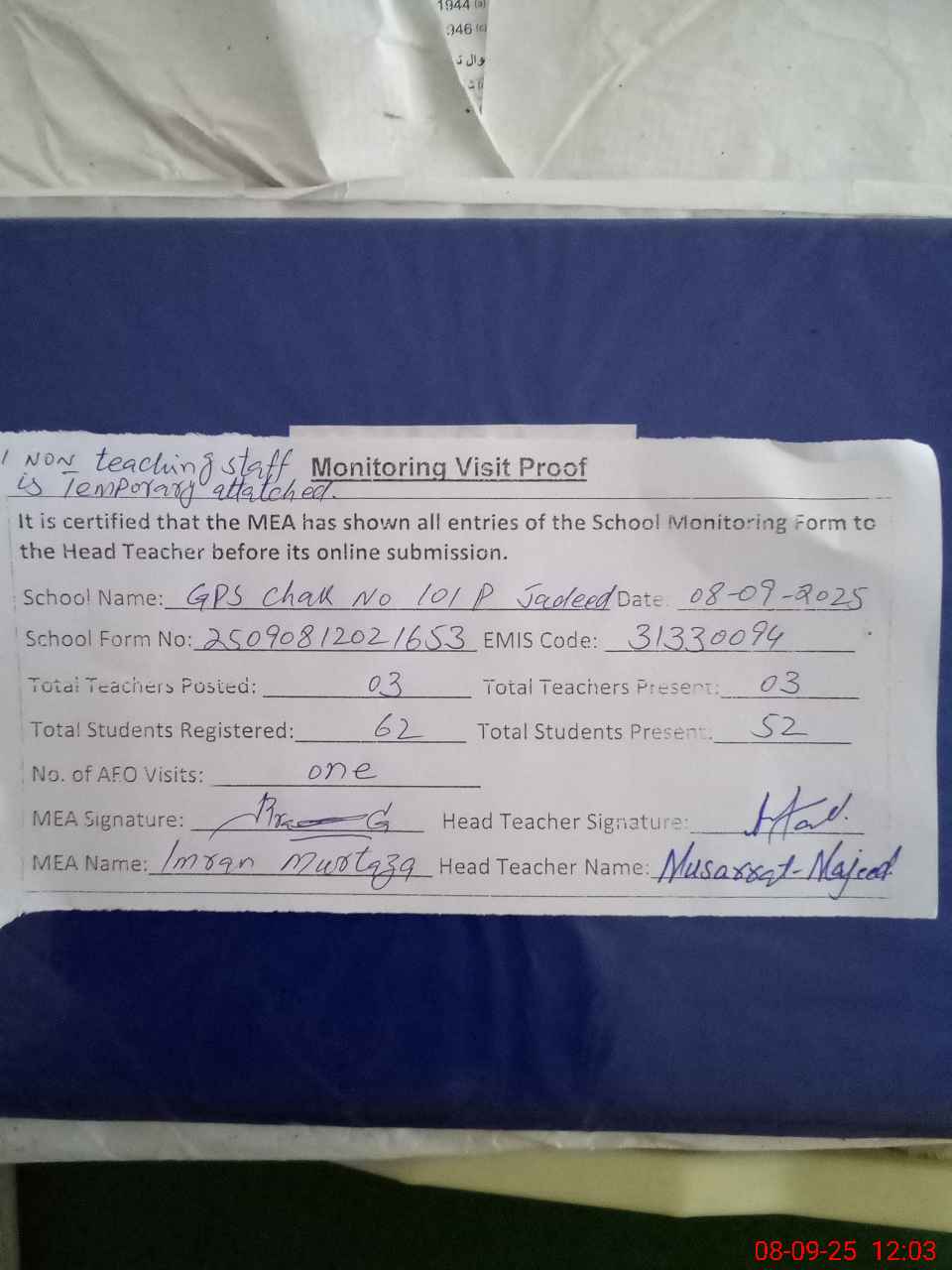 | EMIS Code: 31330094 | Name of School: GPS CHAK 101/P JADEED | |||
