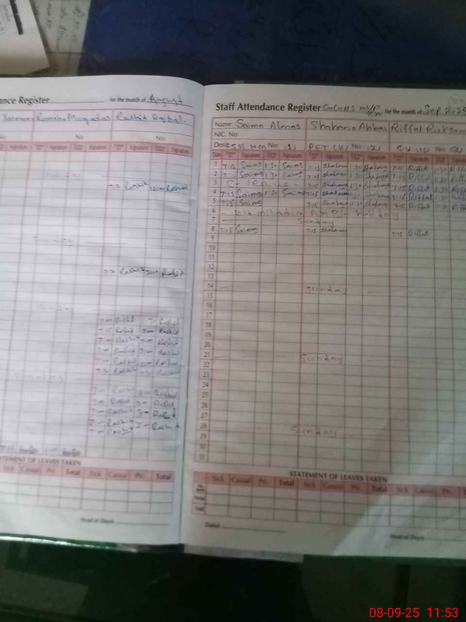 | CNIC | Full Name | Designation | R/C | Absence During Last Calender Month |
