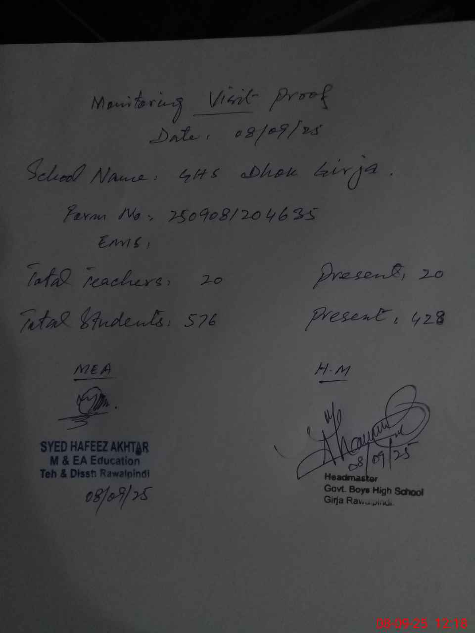 | EMIS Code: 37330136 | Name of School: GHS DHOK GIRJA | |||