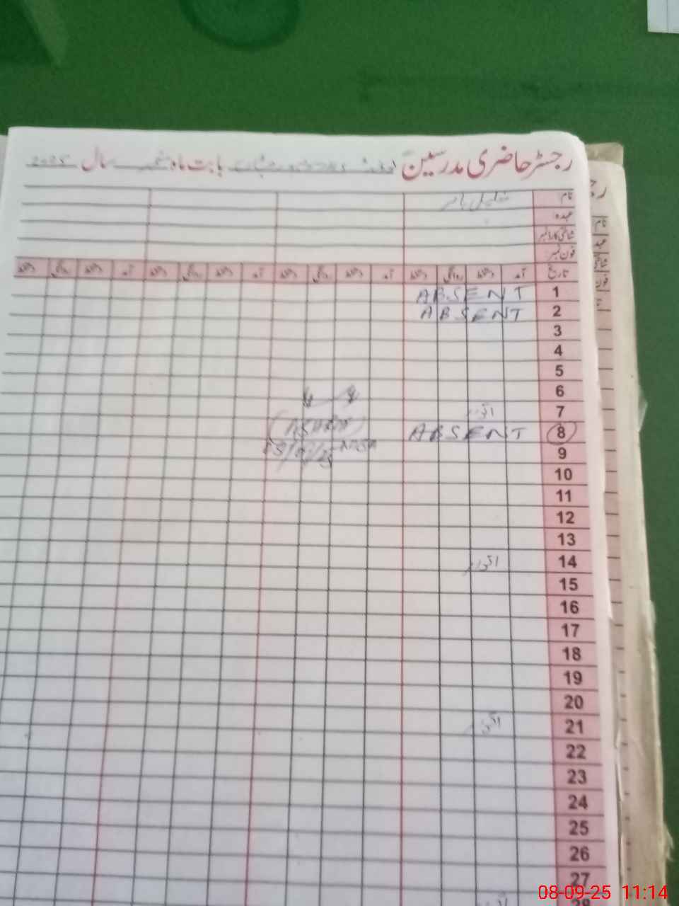 | CNIC | Full Name | Designation | R/C | Absence During Last Calender Month |