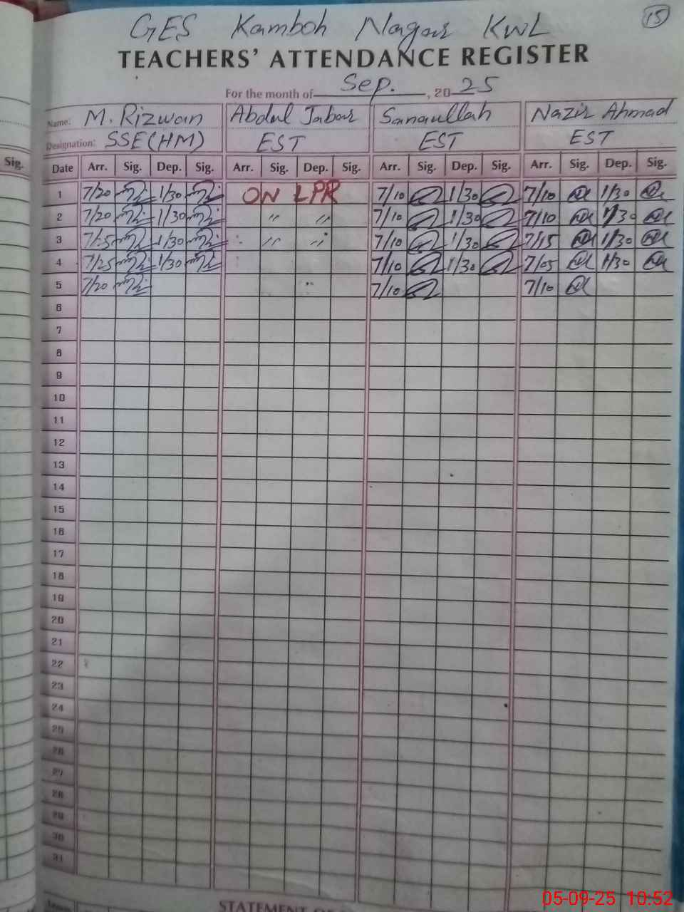 | CNIC | Full Name | Designation | R/C | Absence During Last Calender Month |