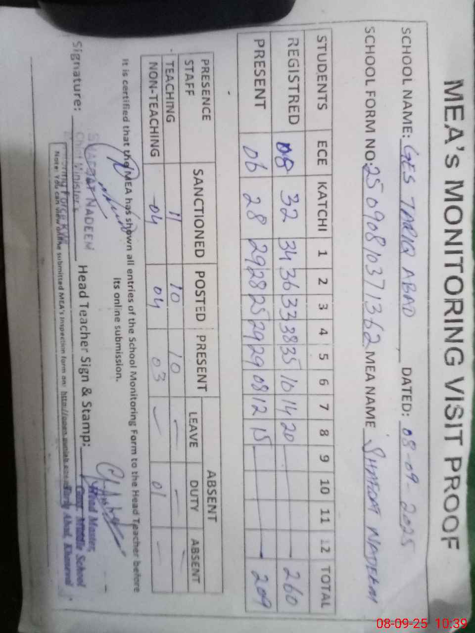 | EMIS Code: 36420060 | Name of School: GES TARIQ ABAD, KHANEWAL | |||